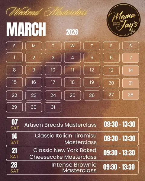 March 2026 Baking Masterclass Schedule