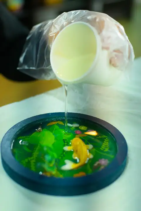 • Arrive at the studio and settle in as the host walks you through the basics of resin art, safety tips, and the tools you will be using.