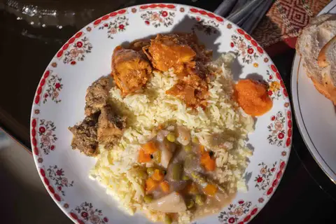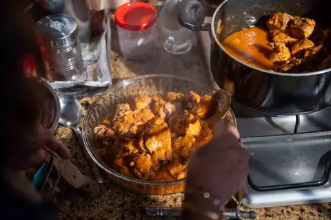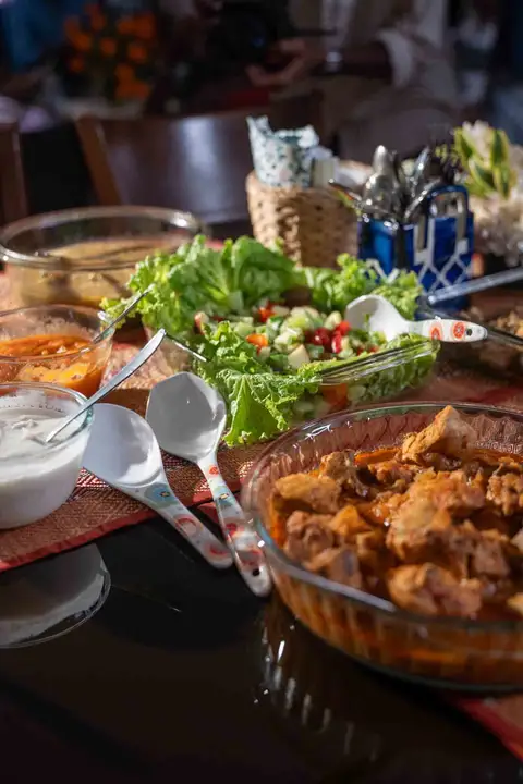 The host walks you through the backstory of the dishes served. The menu: • Starters: Miniature veg rissoles. Colonial pepper chicken bites. • Mains: Anglo-Indian chicken vindaloo. Anglo-Indian vegetable brown stew. Saffron coconut rice. Devil chutney / Hell’s flame relish. Ȃ Dessert: Classic trifle pudding/ bread & milk custard pudding / Viceroy’s banana pudding. • Add-ons: Fresh cucumber and tomato salad, bread, pickles, curd. *An all-vegetarian spread is available on special request.