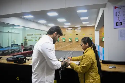 • Step into the lane and shoot 40 shots across 2 rounds with air rifles, guided by an expert who helps you with stance, aim, and technique throughout.