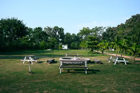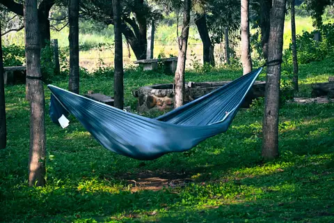 • Explore different camping areas within the property. • Pick a hammock to snooze in or find a bench to read on.
