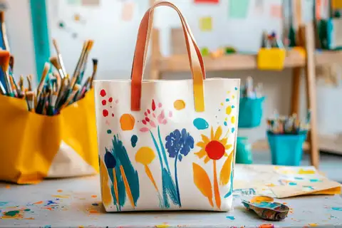 • The experience ends with guests admiring their finished creation and taking home their custom-painted tote bag.