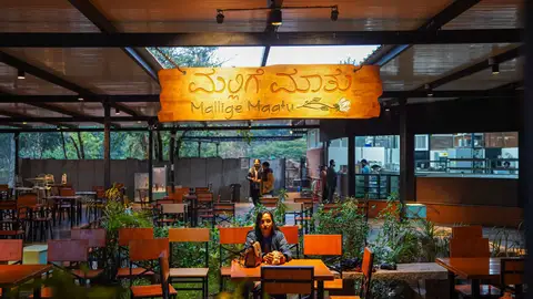 Enjoy Satvik vegetarian food at the two restaurants on the campus.