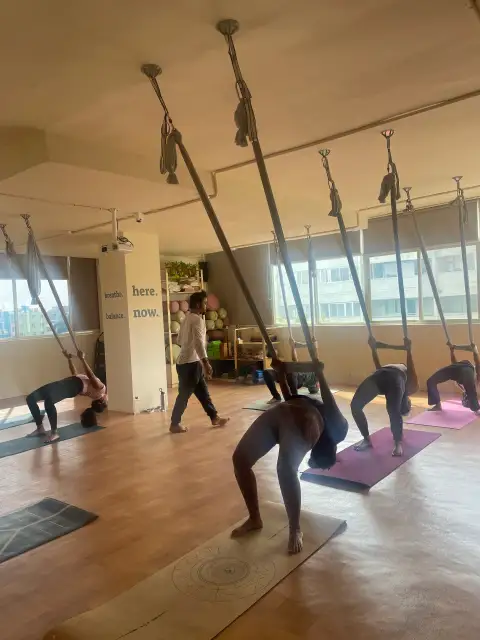 • Hammock-assisted deep stretches and spinal traction to improve flexibility.