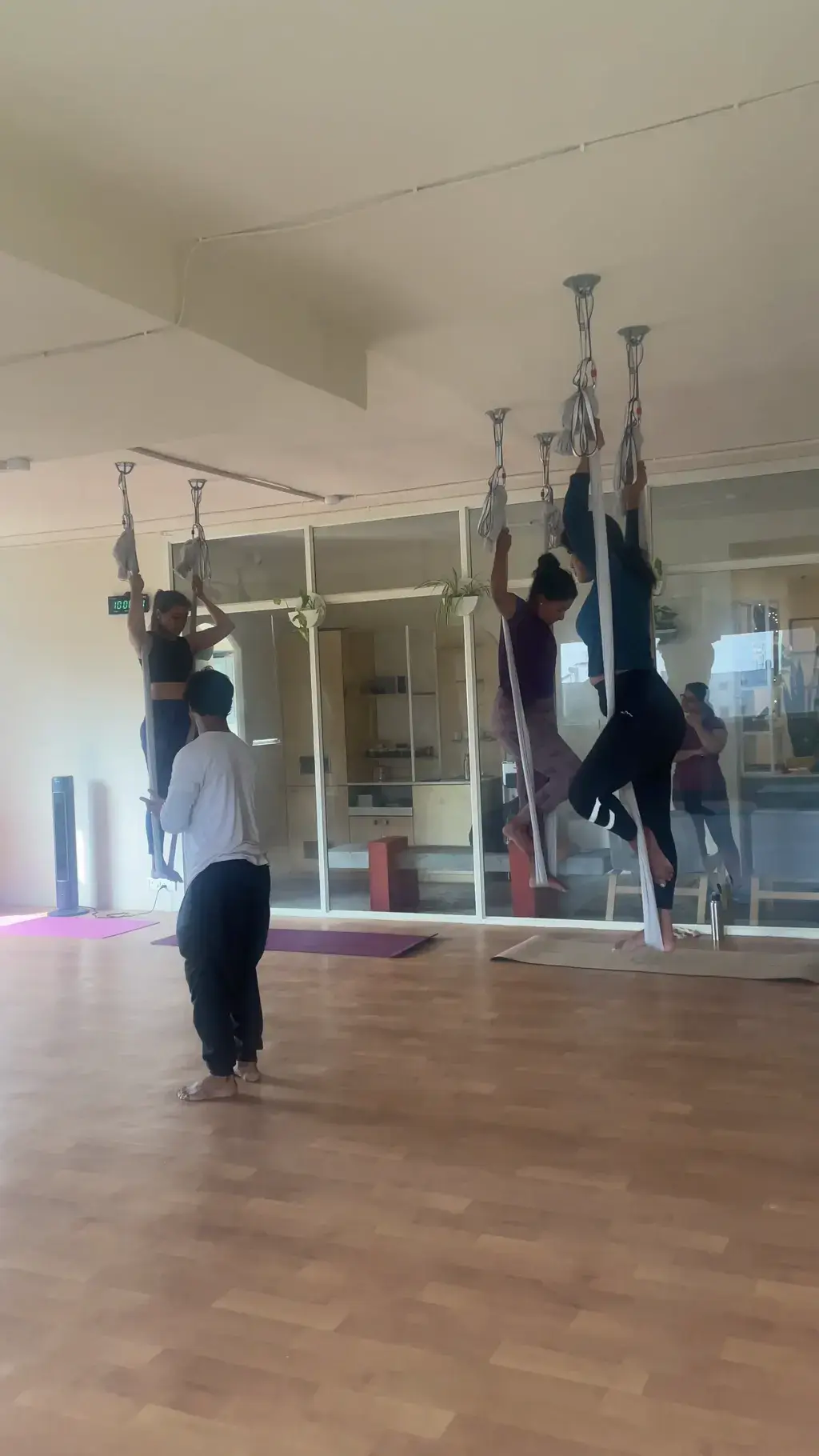 Foundational poses and aerial sequences. Focus on overcoming fear, building confidence, balance, and aerial strength.