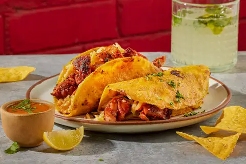 Relish a flavour-packed Mexican main course, paired with an almond horchata drink that brings it all together.