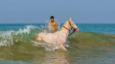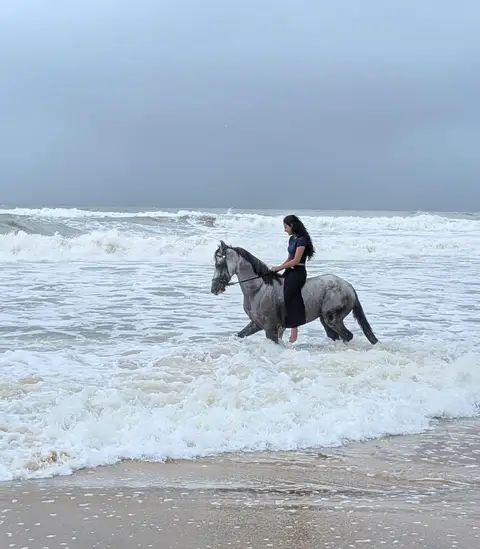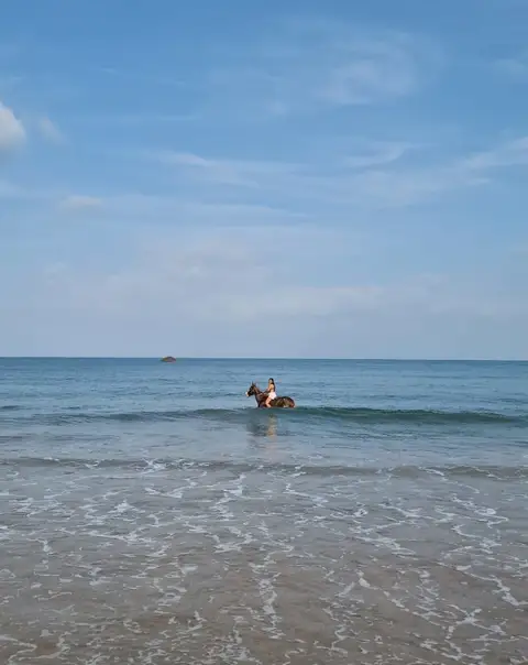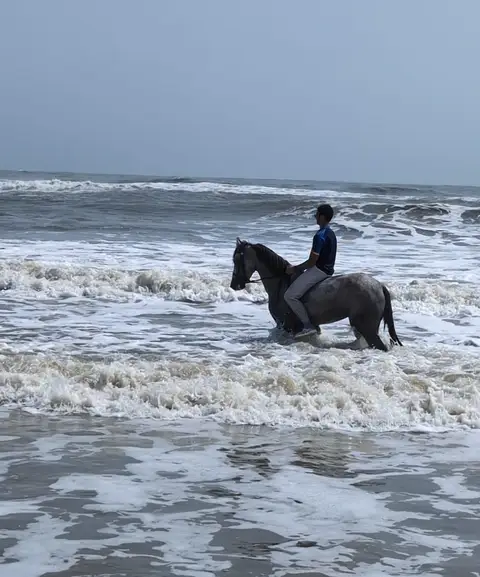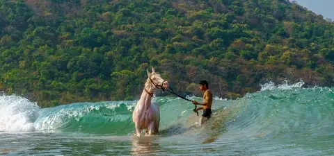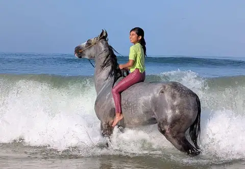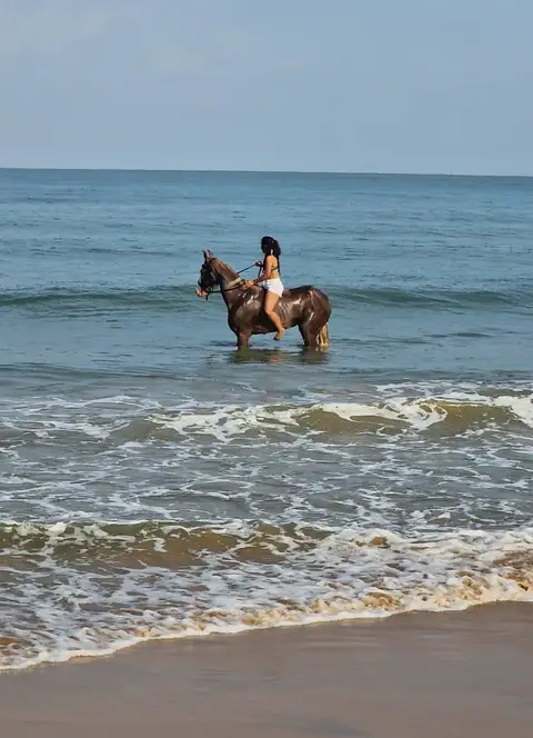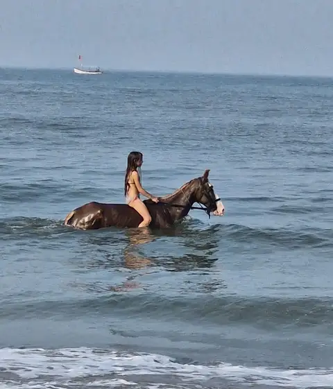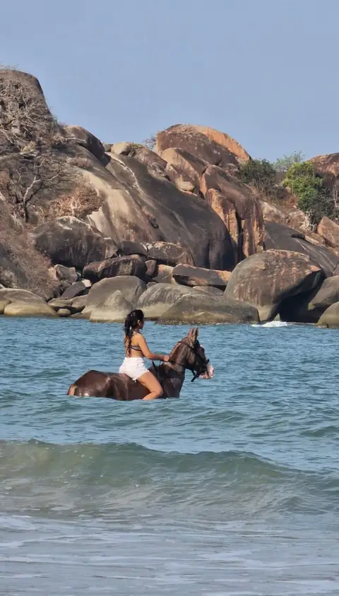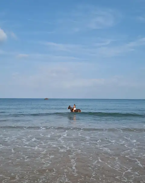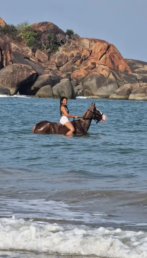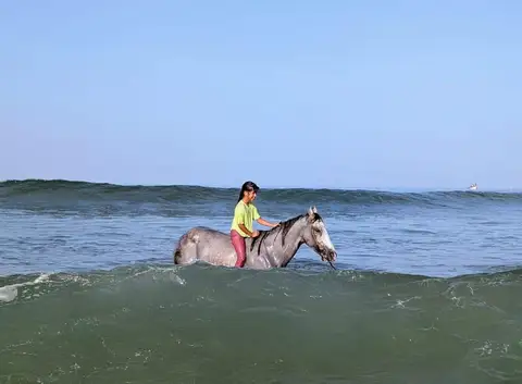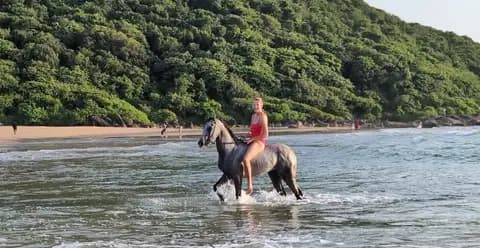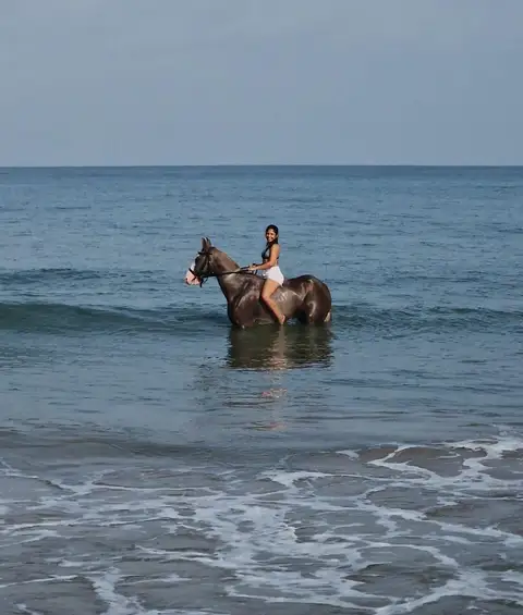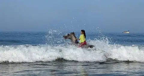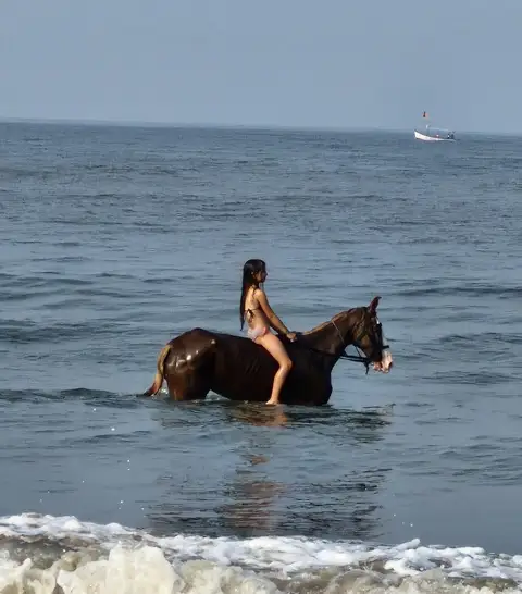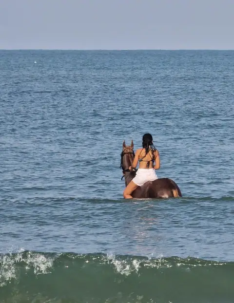 • Experience the thrill as your horse wades through the water, splashing and moving gracefully with the waves.