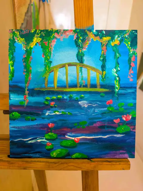 Familiarise yourself with the materials in front of you, including canvas, acrylic paints, various brushes, a palette, water cup, and rag. You’ll also learn how to use each tool properly, care for them, and seal your finished acrylic painting to preserve it.