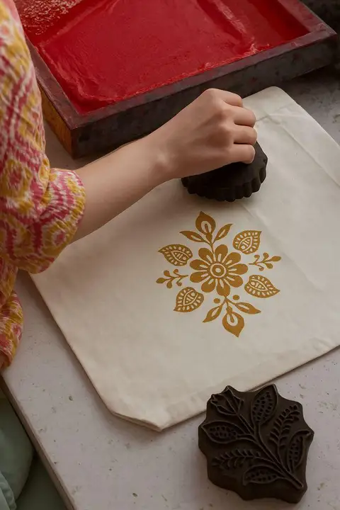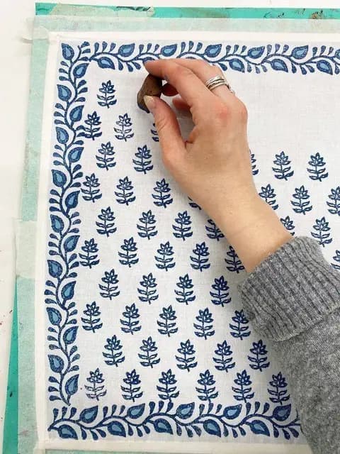• Greet participants, review safety, and show inspirational block-printed examples.