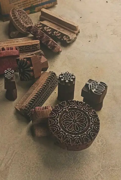 • Introduce the pre-made wooden blocks, ink/paint, printing surfaces and foam pads.