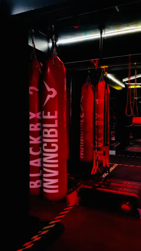 • Full-body circuits mixing punches, bodyweight moves, and cardio bursts.