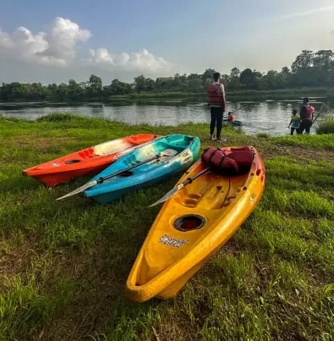 •Arrive at the riverside cabin, settle in, and get familiar with the serene surroundings.