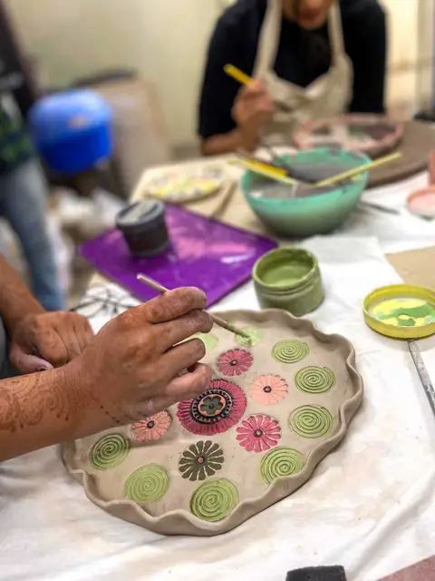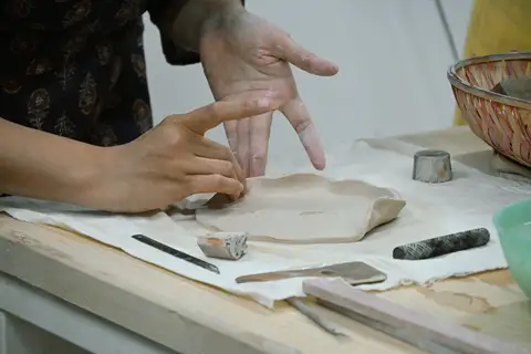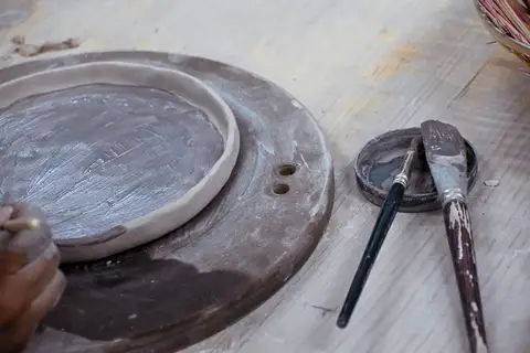 • Learn Slab Work - rolling, moulding and pinching. • Work with fine and pliable Stoneware Clay. • Pick your project: a plate or a chip ‘n’ dip platter. • The technique lets you feel and understand the clay deeply. • It sets you up to create anything at home with clay and simple tools.