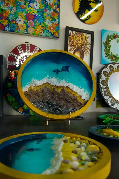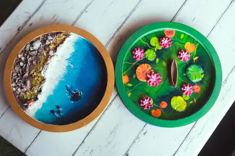 • Arrive at the studio and settle in as the host walks you through the basics of resin art, safety tips, and the tools you will be using.