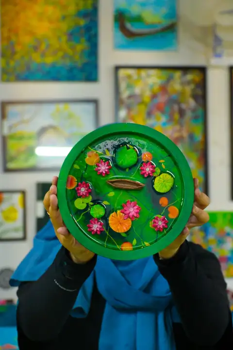 • The host demonstrates how to mix resin, add pigments, and create depth and water-like textures.