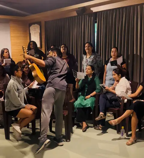 • A small introduction to what vocal harmony is, with a fun, social bonding game with music and ice-breakers.